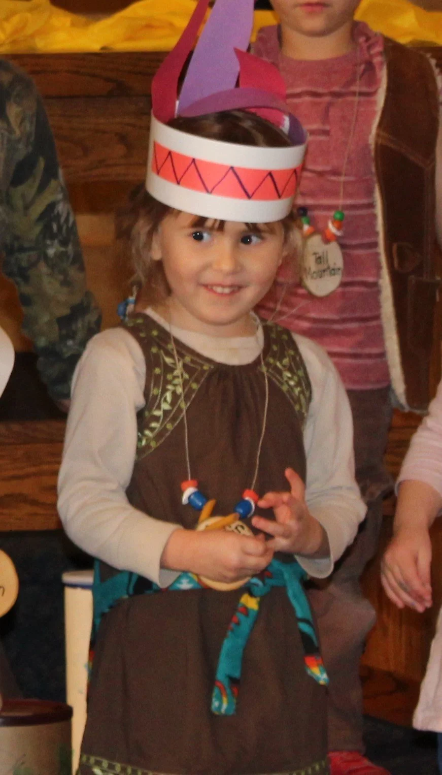 On the one hand, I could smile at my sweet child singing “Pow Wow,” “A Boy and A Girl in a Little Canoe” and “5 Little Pilgrims.” On the other hand, when I started to listen to the words, see our teachers (whom we love and respect) wearing Pilgrim and Indian costumes, and bring home feather headdresses out of construction paper, I had my sister in my mind.